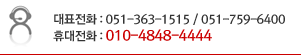 : 051-363-1515 / 051-759-6400 ÈÞ´ëÀüÈ : 010-4848-4444 |